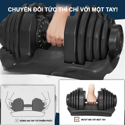 ✅ Tiết kiệm không gian – 1 quả tạ = nhiều mức tạ khác nhau, thay thế cả dàn tạ rời cồng kềnh.